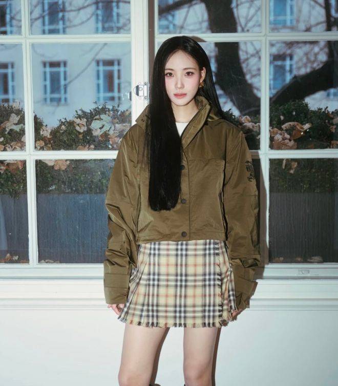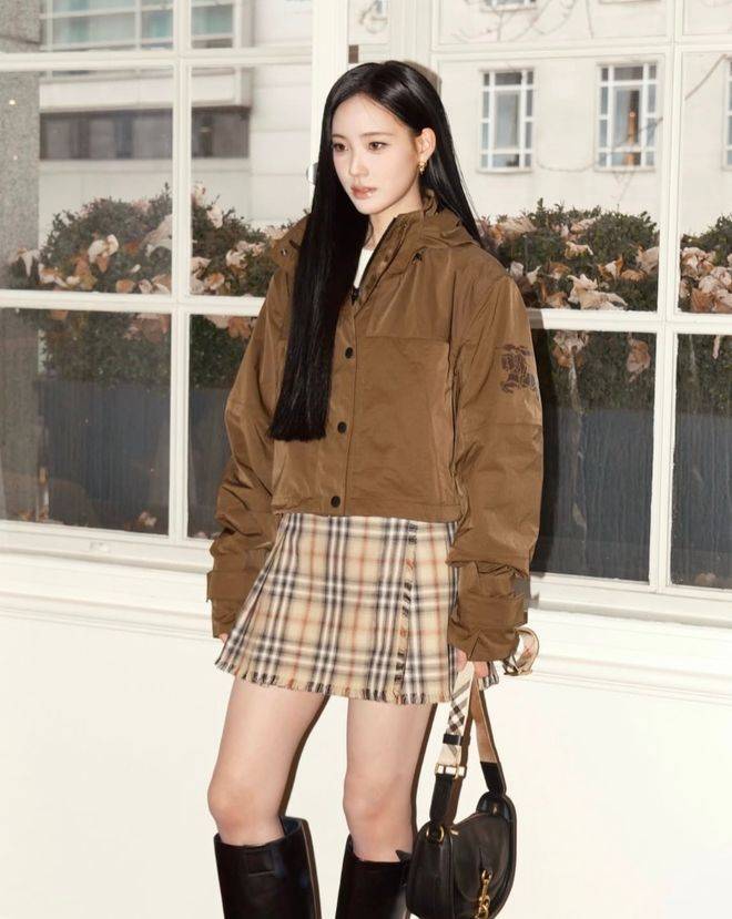 这次伦敦之行,Lily准备了两套截然不同的造型,每一套都让人眼前一亮。第一套是白色宽松浴袍搭配精致妆容,一头长直发垂落肩头,举手投足间尽显温婉甜美,纯欲范儿直接拉满。第二套则是棕色短款夹克搭配格纹百褶短裙,腰线完美展现纤细曲线,脚踩黑色长筒靴,漫画腿若隐若现,韩系少女感扑面而来。